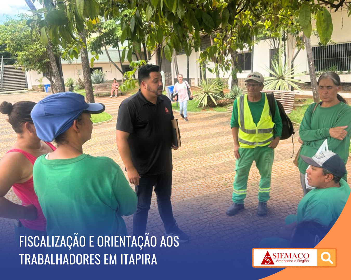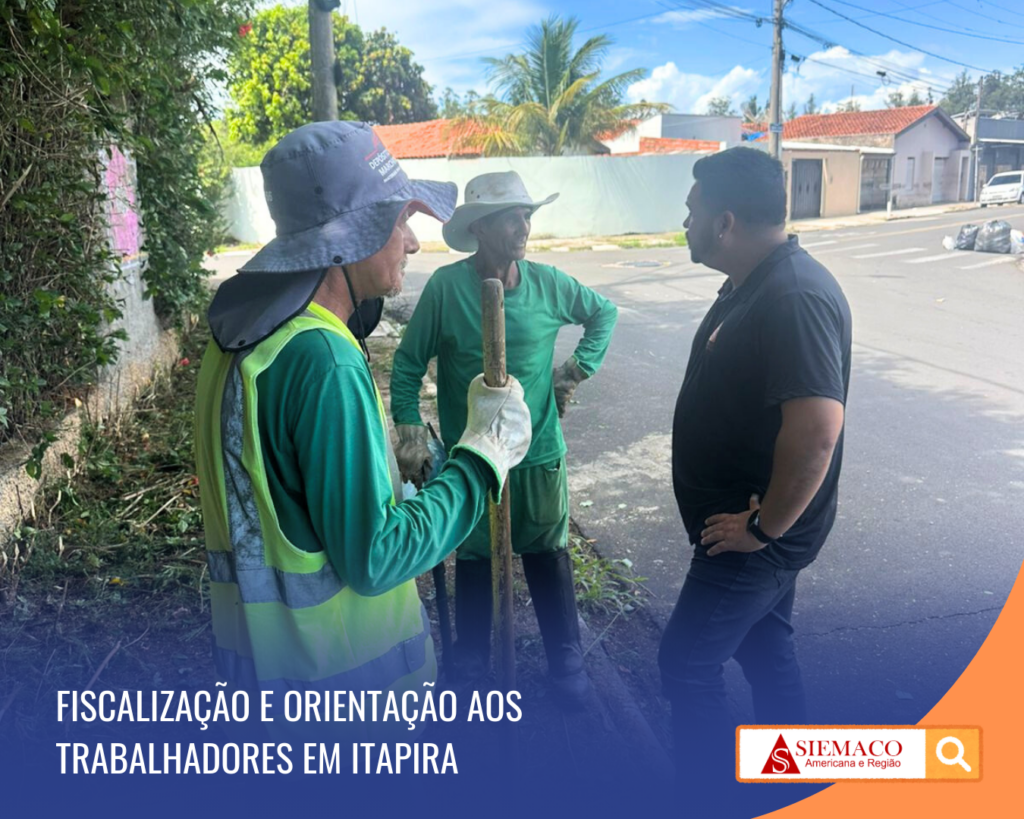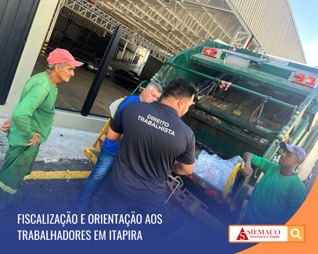 O SIEMACO esteve na empresa Condesu Sempre Limpa, em Itapira, realizando fiscalização e divulgação de benefícios junto aos trabalhadores de Áreas Verdes, Varrição e Coleta de Lixo da Limpeza Urbana.